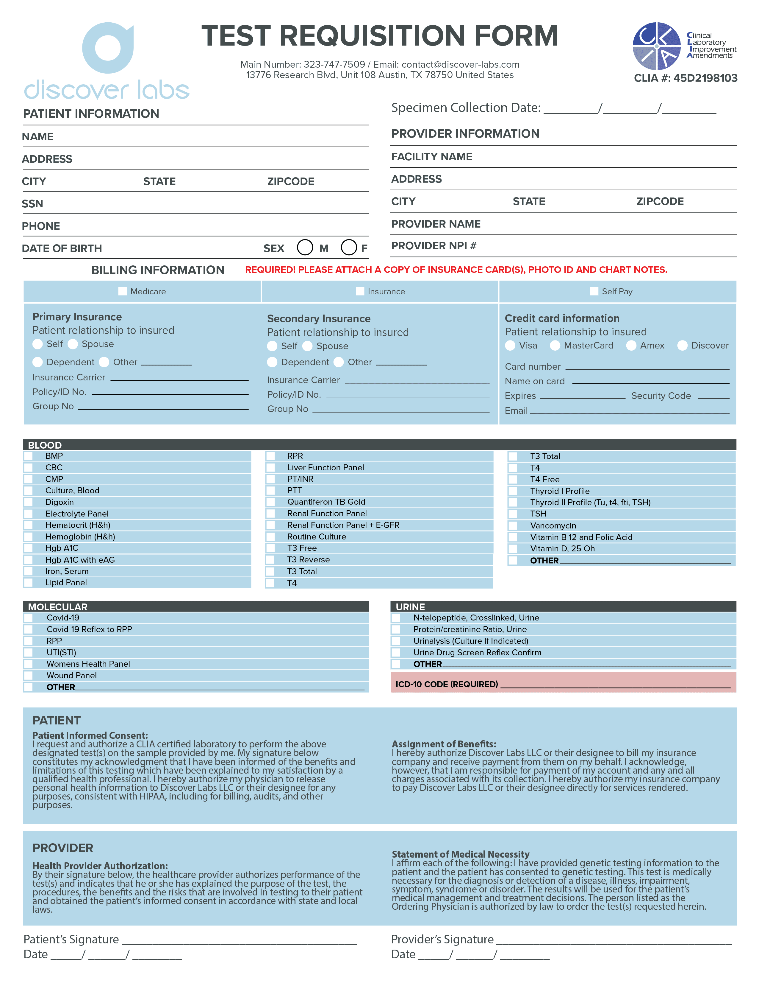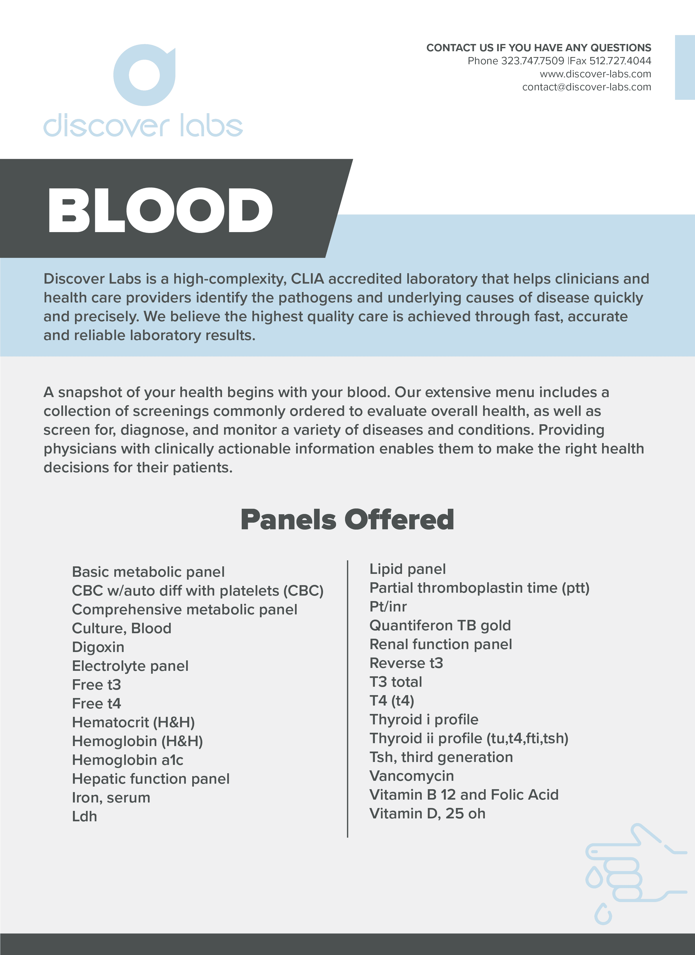 Discover Labs requested the design of a series of flyers and forms to distribute to patients for relevant testing. I created a package that included the flyers and Discover Labs requested the design of a series of flyers and forms to distribute to patients for relevant testing. I created a package that included the flyers and forms, all designed in accordance with their brand guidelines for a cohesive and consistent appearance.forms, all designed according to their brand guidelines, for a cohesive and consistent look.